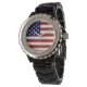 El diseño angustiado de una bandera estadounidense es el fondo de esta cara de reloj. Puede mover la imagen de izquierda a derecha, de arriba a abajo, para ajustarla a una ubicación deseable de las franjas y estrellas.