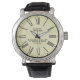 Un reloj diseñado como un regalo para reconocer el servicio fiel de un analista de negocios. Agregue el nombre del destinatario, así como la empresa u organización. regalo para un analista de negocios. Fondo de estilo pergamino.