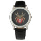 Araña mecánica, de vapor punk con oro, engranajes de latón y una lámpara de vidrio roja sobre un fondo negro. Estilo Steampunk.