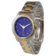 Mostrarás tu estilo elegante con la compra de este reloj con una cara azul marino y números dorados.
