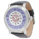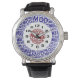 Estiloso Mens retro luce reloj de pulsera con un toque moderno, blanco y azul blanco blanco y azul tipografía de la palabra arte. Clásico motociclista de Mod sexties blanco icónico redondo compuesto por las palabras Mod en rojo blanco y azul