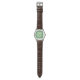 Este es un patrón elegante que presenta una imagen de piel de lagarto verde con números romanos en la cara del reloj y un nombre de muestra. Simplemente reemplaza el nombre con el tuyo propio.