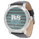 Reloj De Pulsera Audaz Monograma y nombre, Lt. Líneas Verde azulada