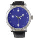 La bandera de Australia se basa en el pabellón azul marino británico, un campo azul con la bandera de la Unión en el cantón o barrio de la alta torre, aumentada o desfigurada con una gran estrella blanca de siete puntas (la Estrella de la Commonwealth) y una representación de la constelación de la Cruz del Sur, compuesta por cinco estrellas blancas: una estrella pequeña de cinco puntas y cuatro estrellas más grandes de siete puntas.