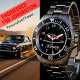 Este divertido y elegante reloj personal de moda. Es un reloj moderno y bonito con números blancos. Con un auto deportivo negro y rojo en un archivo png. Puede cambiar el texto y el color de fondo a su elección.