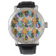 Este reloj masculino tiene un diseño moderno de mediados de siglo de aves superpuestas en colores de poder floral. ¿Quieres colores diferentes? Mándame un mensaje.