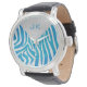 Reloj De Pulsera Azul cebra y blanco con monograma