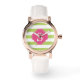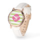 Reloj De Pulsera Bandas horizontales verdes y rosas monograma