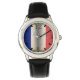 ... es un tricolor de tres barras verticales de igual anchura en azul, blanco y rojo (desde el mástil).