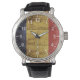 Reloj De Pulsera Bandera de Rumania en grano de vieja madera