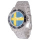 Bandera de Suecia. La bandera de Suecia es una cruz escandinava que se extiende hasta los bordes de la bandera. Esta cruz escandinava representa el cristianismo. Se cree que el diseño y los colores de la bandera sueca se han inspirado en el actual escudo de armas de Suecia de 1442, que es azul dividido trimestralmente por una fécula de oro cruzado, y que está inspirado en la bandera danesa. El azul y el amarillo se han utilizado como colores suecos al menos desde el escudo real de armas del rey Magnus Birgersson de 1275.