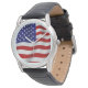 El reloj clásico de correa de cuero negro masculino con una imagen de la bandera estadounidense. Vea botón cuadrado coincidente, encanto cuadrado, gran cadena de claves metalizado cuadradas premium, cadena de teclas acrílicas cuadradas de doble cara y collar cuadrado. Vea la colección completa de Independence Day Watch bajo la categoría ACCESORIOS en la sección VACACIONES.