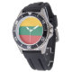 Este diseño presenta la bandera nacional de Lituania, país de la región báltica de Europa. El país está situado a lo largo de la costa sudeste del Mar Báltico, al sureste de Suecia y Dinamarca. Lituania está rodeada por Letonia al norte, Belarús al este y al sur, Polonia al sur y el óblast de Kaliningrado, que es un enclave ruso, al suroeste. La capital y ciudad más grande de Lituania es Vilnius.