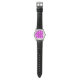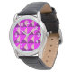 Este reloj masculino tiene un diseño Bauhaus de triángulos superpuestos en púrpura, magenta y rosa.