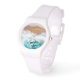 Un reloj de pulsera deportiva moderno, fresco y de moda, con una fotografía de playa en el interior donde se pueden leer las vibraciones de la playa.