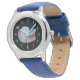 Una acuarela de un bonito betta macho azul y rojo adorna este divertido reloj.