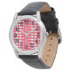 Este reloj masculino tiene un diseño Art Déco de diamantes y triángulos que parecen corbatas en rojo y rosa.