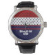 Reloj De Pulsera Blanco Rojo Patriótico y Azul con diseño de estrel
