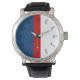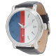 Apoye el rojo, blanco y azul en todo lo que hagas y usas —incluido este gran reloj. Con una cara con números negros clásicos sobre un fondo de rayas verticales rojas, blancas y azules, este reloj es la definición de estilo.
