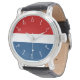 Apoye el rojo, blanco y azul en todo lo que hagas y usas —incluido este gran reloj. Con una cara con números blancos clásicos sobre un fondo rojo y azul con una franja blanca, este reloj es la definición de estilo.