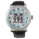 Reloj De Pulsera Blue Filigree Damask Writing Watch