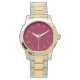 Tu hijo mostrará buen gusto usando este reloj de color burdeos y amarillo-dorado-numerado.