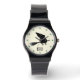 Diseño único de reloj de bruja con silueta de bruja voladora de Halloween y cita graciosa.