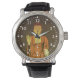 Bella Buda de pie exhibiendo el Vitarka Mudra, el gesto de la enseñanza. Buda sobre una flor de loto con fondo vintage marrón oscuro con elementos florales claros. ¡¡¡El Buda Maravilloso es para los budistas y seguidores del budismo!! ¡Buda fantástico!