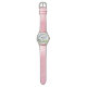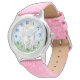 Este reloj de caballos para chicas cuenta con un poni de bonito con una cola y un mané rosados. Ella está parada en un campo de flores y un hermoso fondo azul del cielo con el sol cruzando las encantadoras nubes blancas.