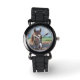 Este reloj está decorado con un caballo marrón con un blanco en la cara parado en el paddock. Los amantes de los animales apreciarán este. Personalizar añadiendo su monograma a la imagen.