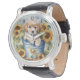 Acuarela Cachorro de girasol, este diseño presenta un adorable Cachorro en un cubo con girasoles hecho en acuarela.