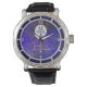 Un diseño elegante de signos de zodiaco con un borde azul oscuro, estrellas de galaxia con el signo de zodiaco de Cáncer. Personalizar fácilmente este reloj a su nombre y fecha de nacimiento. - diseñado con natural de zaubershirts -