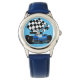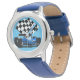 Reloj De Pulsera Carro de raza azul con bandera verificada