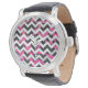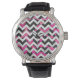 Reloj De Pulsera Chevron Cow Hot Pink and Black Print