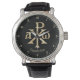 Icono de cristograma Chi-ro con letras alfa y omega. Monograma que forma abreviatura para el nombre de Jesucristo. Color de fondo personalizado. Texto personalizado.