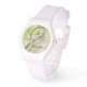 Chica tenis reloj de pulsera deportivo con material gráfico de tenis compuesto con un tema de color césped/arcilla y pelota de tenis sobre racquet - personalizar con su nombre - por katz_d_zynes