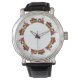 reloj de pulsera de banda de cuero negro con una cara de trenecito de choo. Los adultos y los niños observan los estilos disponibles.