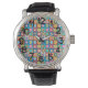 Este reloj masculino tiene un diseño inspirado en Kandinsky de círculos concéntricos en muchos colores diferentes que se repiten a lo largo del diseño.