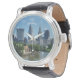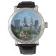 Vista clásica de Cleveland, Ohio desde el río- incluye las 4 principales torres del horizonte de Cleveland, y hermosa vista del río que hizo de Cleveland lo que es hoy! Disponible en muchos estilos, hombres y mujeres y relojes para niños. ¡En cualquier momento es hora de Cleveland!