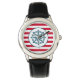 Diseño náutico con decoración de brújula sobre fondo de rayas rojas y blancas