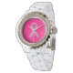 Reloj De Pulsera Conciencia de la cinta rosa con el estilo cromado