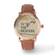 Diseño abstracto mínimo en tonos cálidos de tierra con una cita inspiradora: "Confía en el proceso.