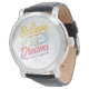 Un diseño lúdico y motivador que muestra el texto "Creer en tus sueños" en una fuente colorida y manuscrita, que representa la energía y el impulso necesarios para alcanzar los objetivos.