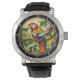 Reloj De Pulsera Crimson Jungle Time" - Stained Glass Red Parrot