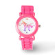 Cute Pink Rainbow Unicorn Girly Watch. El diseño tiene un bonito arco iris durmiendo unicornio con una hermosa manga y cola y un cuerno amarillo. Este unicornio es genial para los chicas, a los que les gustan los cuentos de hadas.