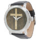 Reloj De Pulsera Cruz cristiana básica Madera Veneer Maple Rosewood