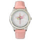 Este reloj presenta una cruz cristiana en el centro, rosa y blanca, con rosas rosas rosas en el centro. El fondo de la cara es rosa con marcas blancas y números para el tiempo con iniciales monogramadas para que puedas personalizar. El regalo perfecto para ocasiones religiosas como la primera comunión y la confirmación. Diseñado por la artista ©Susan Coffey.