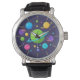 cute space-themed watch featuring cheerful planets and stars. A fun and playful design perfect for kids who love space, making it a great everyday accessory or a charming gift.
