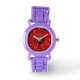 Reloj de margarita rojo brillante con una banda de reloj a juego. Los números son blancos, pero se pueden quitar y se puede agregar un nombre.