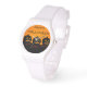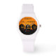 Calabazas negras con fondo naranja, reloj de silicio blanco deportivo